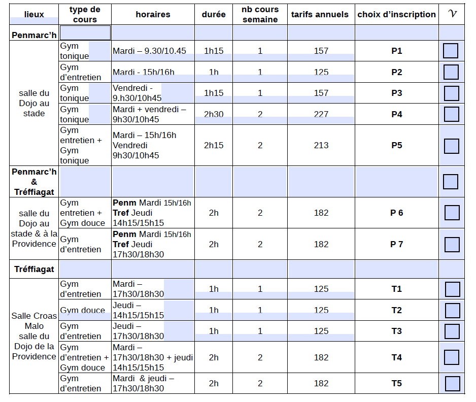 Adhésion à notre association : On peut s’inscrire à Gym Bigoud :